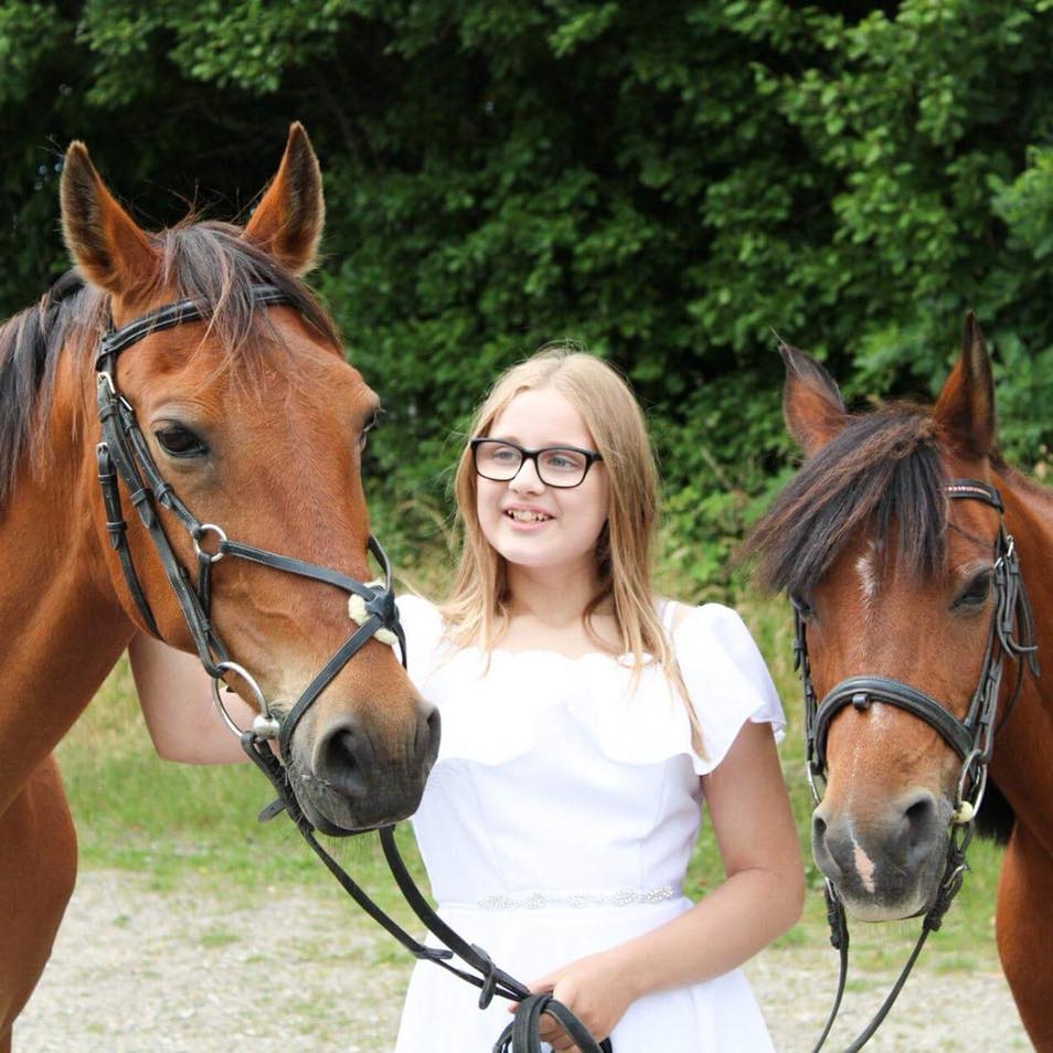 Hun er MEGET børnevenlig - og vant til at omgås små børn i det daglige (strigling samt ridning).
