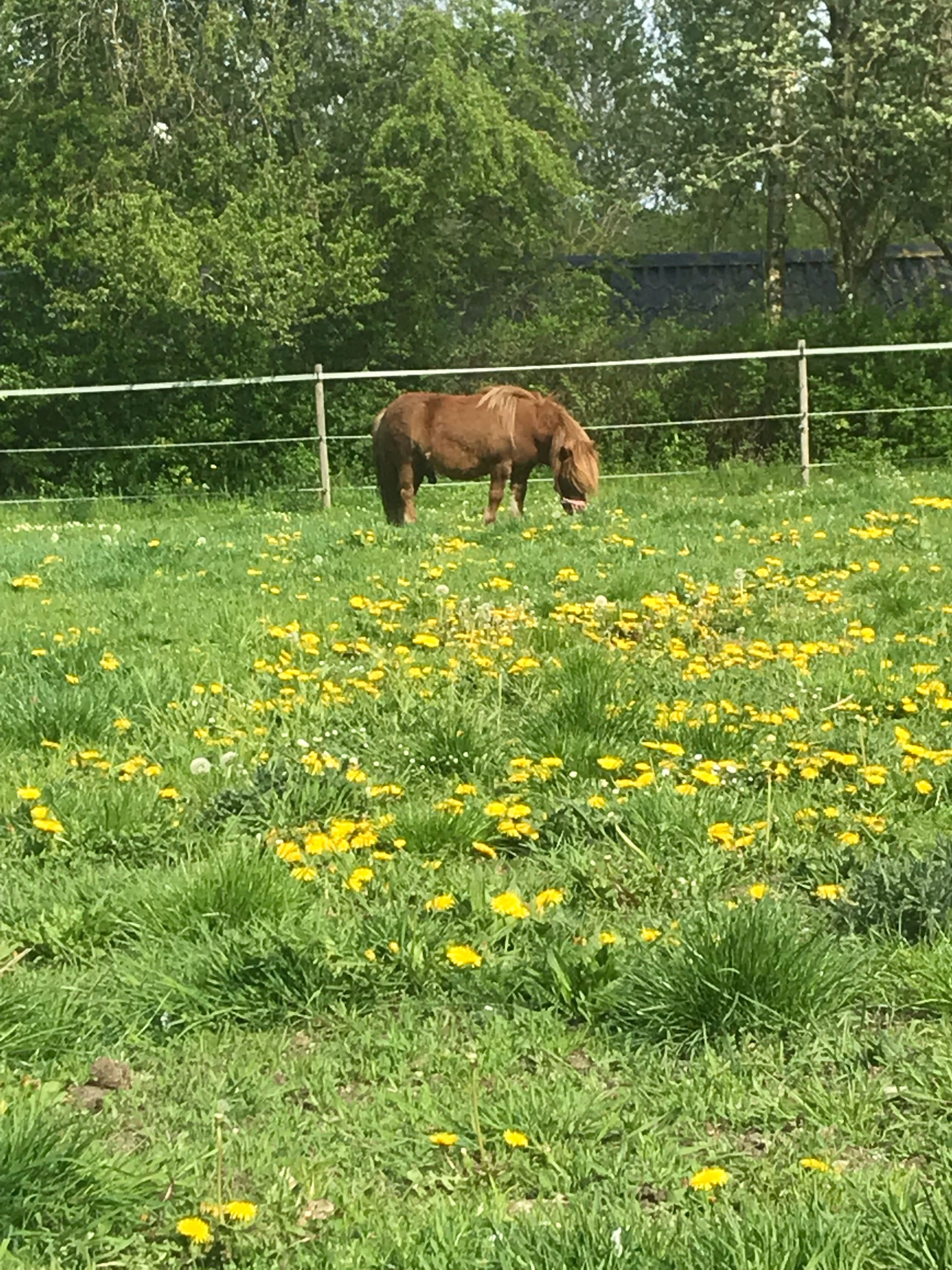 Han er en søde pony elske alle og kam med alle heste og kan rides ar små børn Elske bilv nus og går tur og han er 14 og kan tåle græse